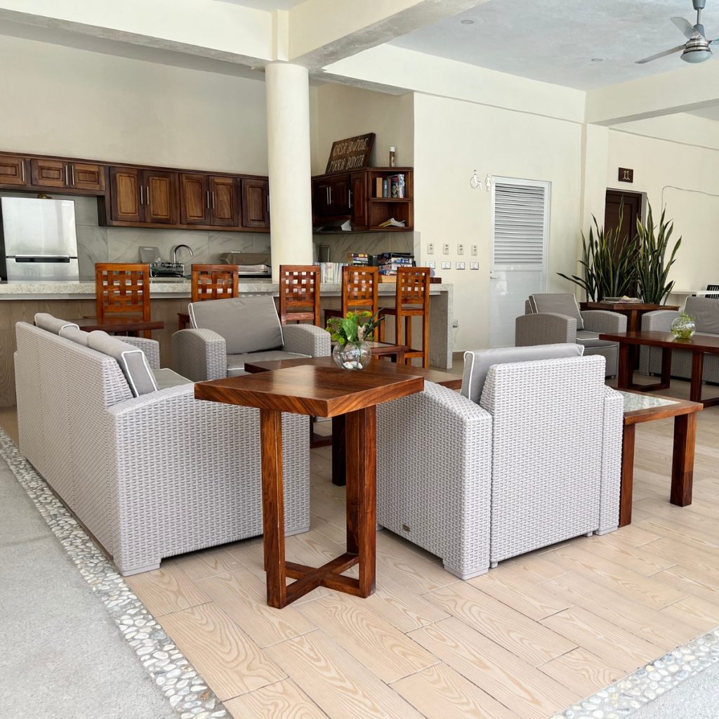 Hermoso loft completamente amueblado, gran balcón con vista a la alberca, comedor y cocina equipada.