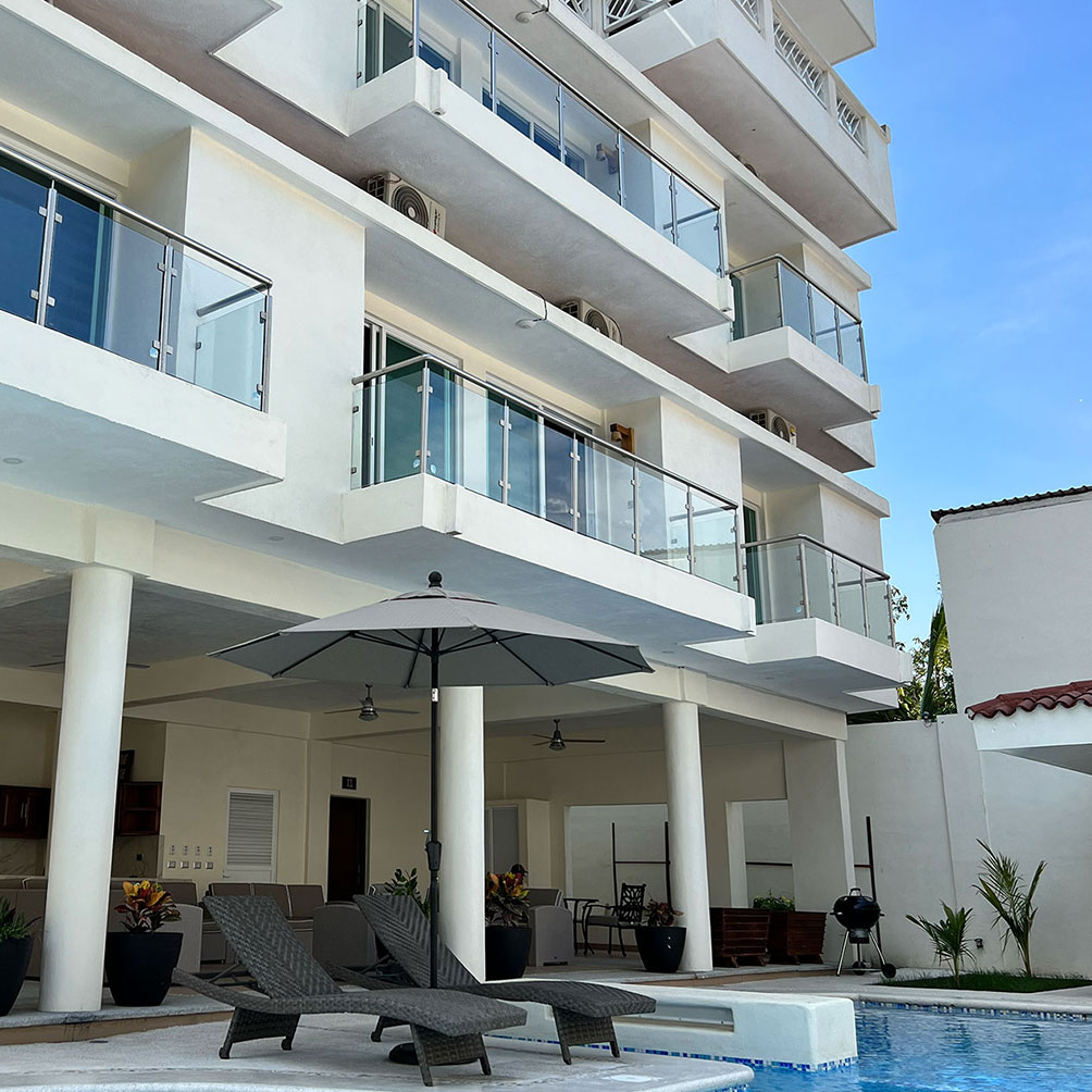 Hermoso loft completamente amueblado, con dos balcones: vista a la alberca y vista al pueblo. Cocina equipada, accesorios para limpieza personal, toallas y secadora de cabello.
